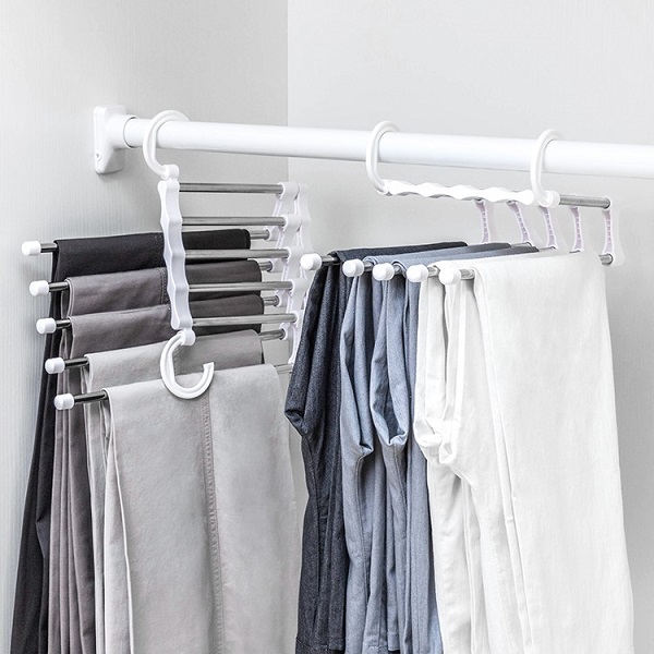 把5個衣架合而為一,水平掛置方便晾掛褲子,整理完可垂直掛置,大大節(jié)省衣柜空間哦。